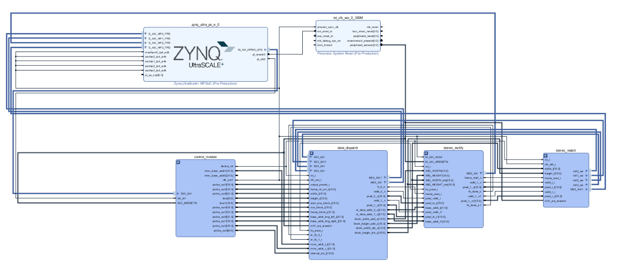 该架构中的立体匹配部分仍延用了上一代 SGM/BM 的设计算法,在保证设计性能的基础上,菲律宾欧博(abg)智能采用了分块匹配的思想,将左右图像分为可拆分的两部分,分别独立进行匹配,在设计上进一步将 BRAM 资源使用量缩减至 1/2。